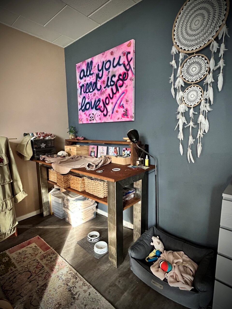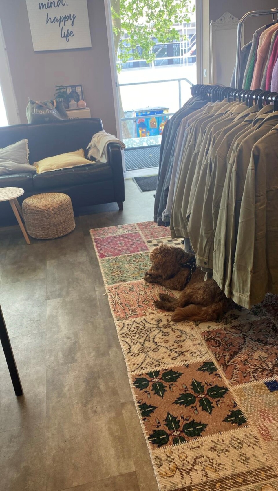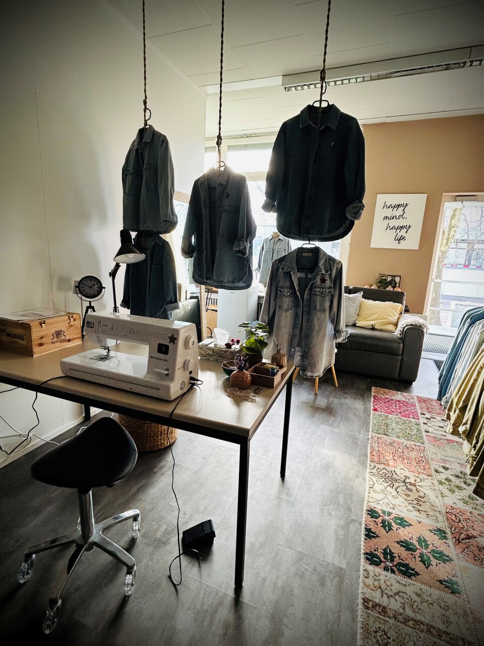Gerne lade ich Sie in mein liebevoll gestaltetes Atelier in Regensdorf ein - eine wahre Kreativzone, in der meine einzigartige Mode entsteht. Begleitet von unserem Hund Lui herrscht eine entspannte und inspirierende Atmosphäre.